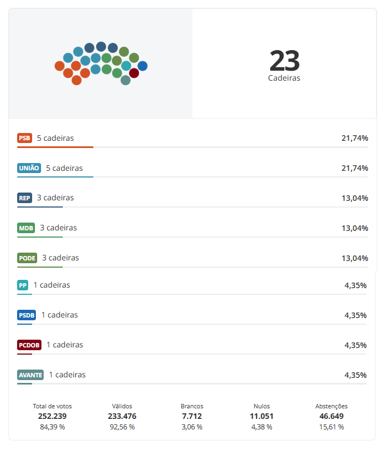 Chegou enfim o dia da eleição, e ao contabilizar os votos para prefeito e vereadores formou-se o o quadro abaixo. Bruno venceu o primeiro turno, e o candidato do governo projetou-se em segundo lugar. Bruno saiu vitorioso também na composição da maioria na Câmara Municipal de Campina Grande, restando reiniciar a campanha rumo ao segundo turno destas eleições.